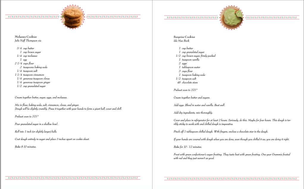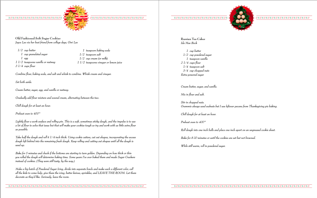 Every year I meet up with friends and family the first weekend of December to bake dozens and dozens of cookies. I realized this event probably wouldn’t last into the younger generations of the family so I put together a cookbook, documenting not only the history of the day and the recipes, many passed down from Grandmothers long gone, but also took photo of the finished cookies, incorporating props that are family heirlooms.